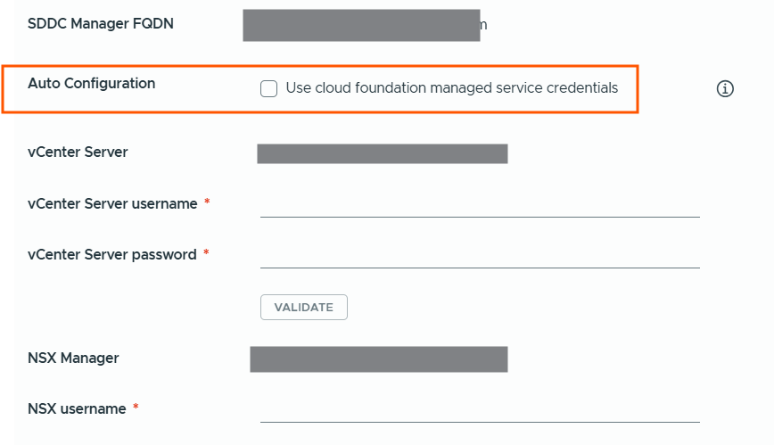 we can manually provide the service account details for vCenter and NSX or we can choose to configure automatically.
