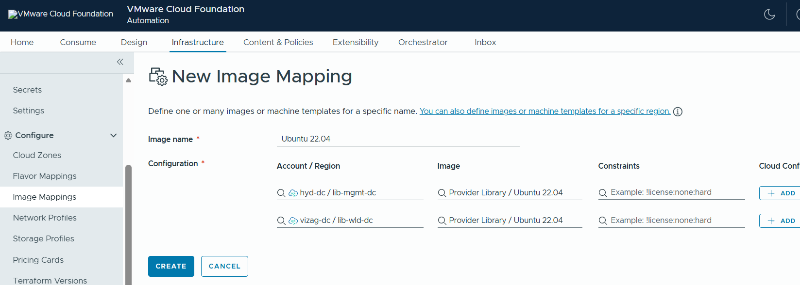 Next we will create Flavor Mapping and Image Mappings.