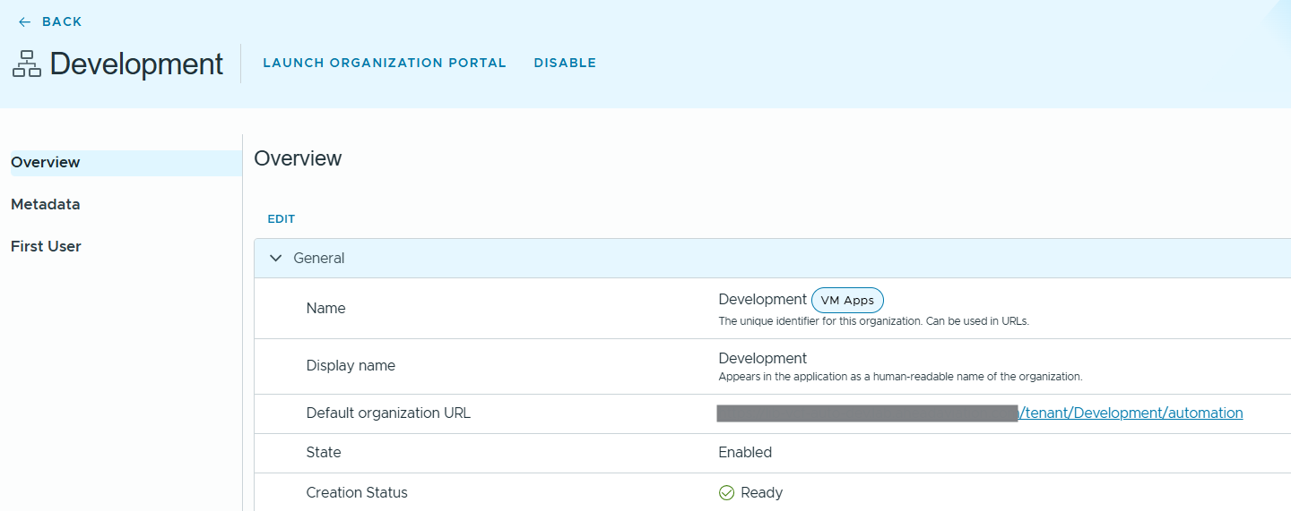 I have already created a VM Apps organization I named it as “Development”. You can see the VM Apps organization portal URL below.