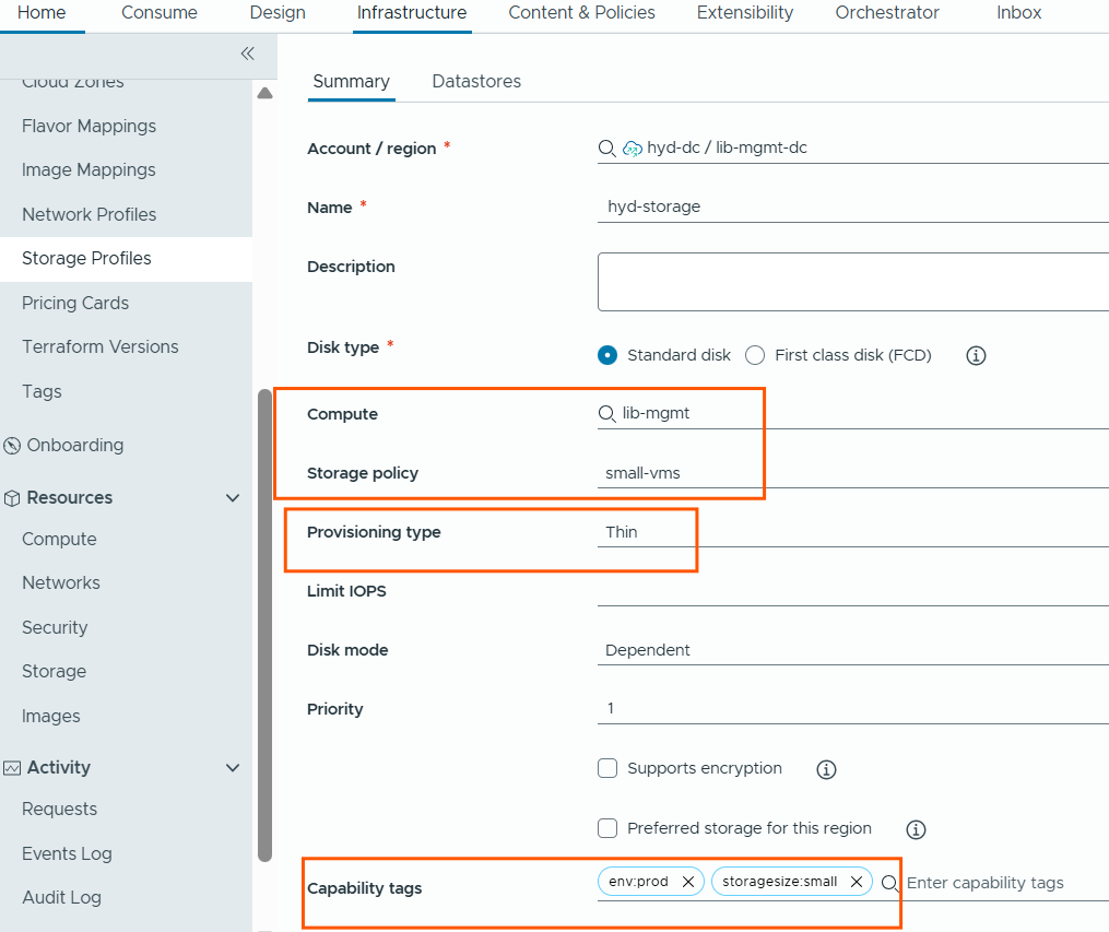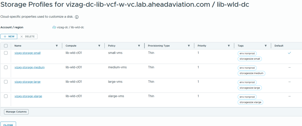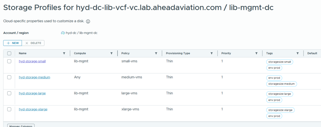 Next, we will have to create Storage profiles.