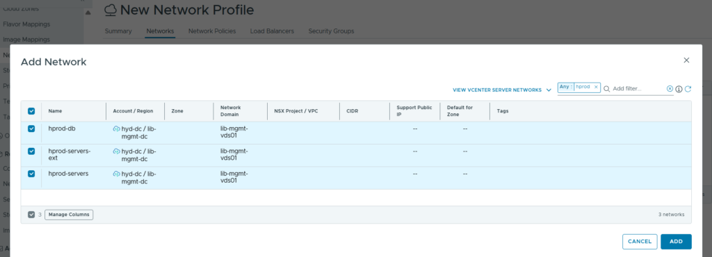 Select each network and define the network specifications and specify the IP range to be used from the selected network.