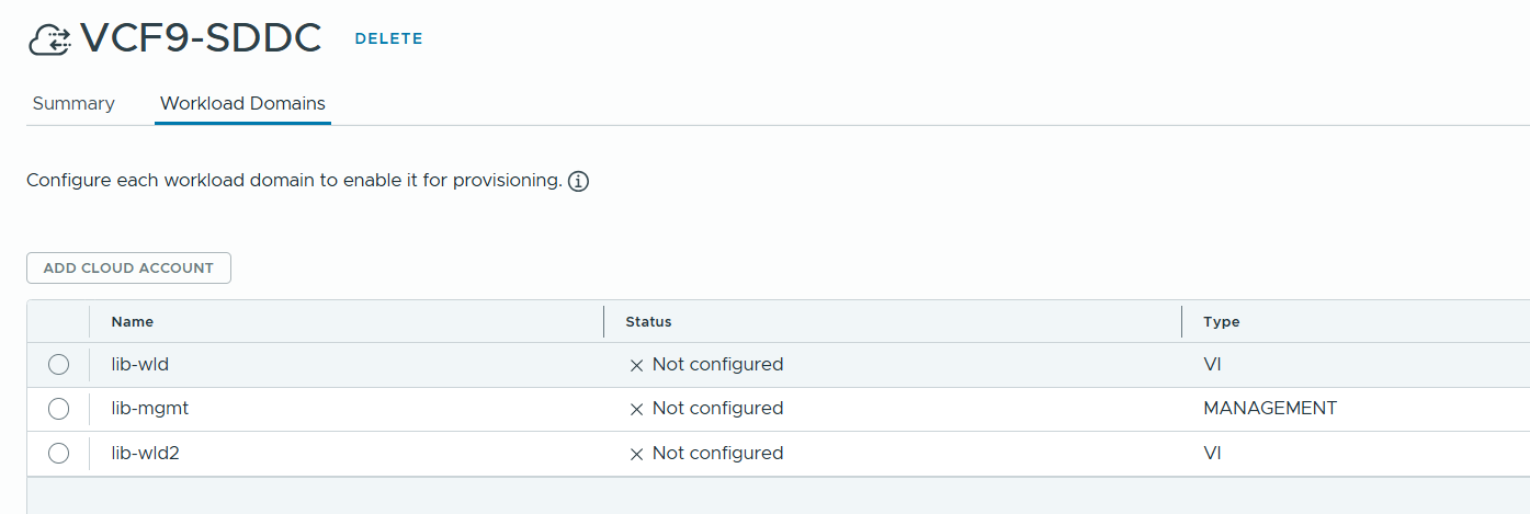 we can see the workload domains are discovered correctly. Next, we will add cloud account.