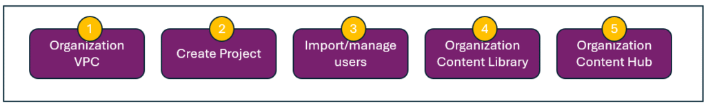 Please refer this organization (Tenant) management journey map from broadcom documentation. It is very useful for customers starting with their first tenant setup.