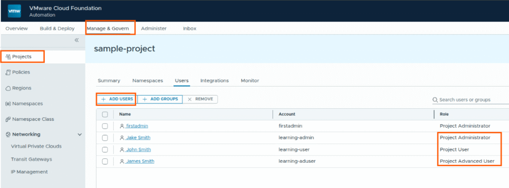 So firstadmin user is both organization administrator and also project administrator for the project sample-project.