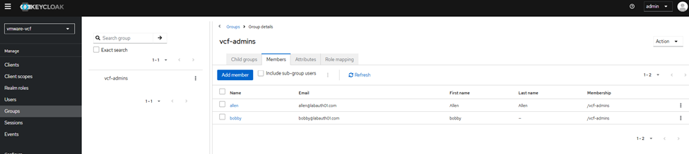 Then I have created two test users allen and bobby added them to a test group called vcf-admins.