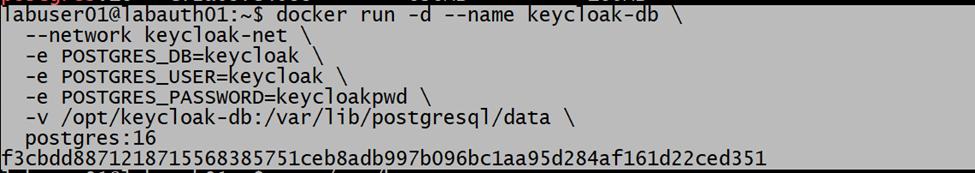 We deployed a Postgres DB for storing the IdP configuration. to connect to the postgres DB, we have created the “keycloak-net” network.