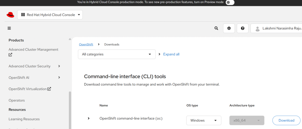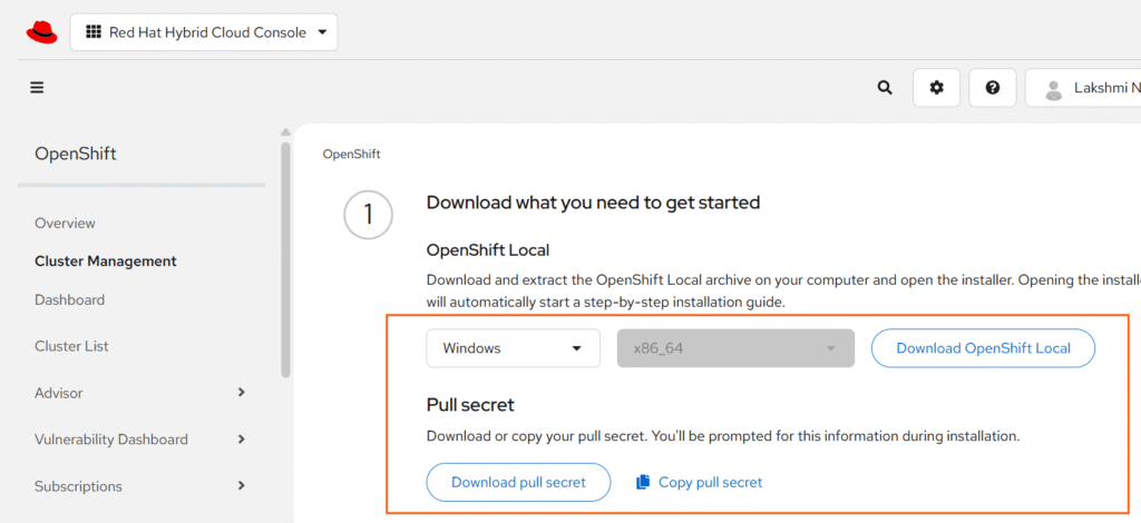1. Download the OpenShift Local installer for Windows from Red Hat’s developer portal: Download here.