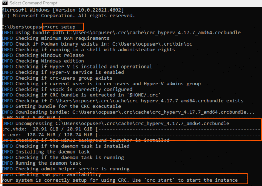 create one), In cmd prompt, type command “crc setup”.