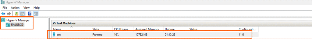 You can check in HyperV Manager to see the CRC VM is up and running.