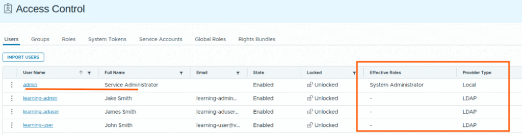 In this VCF automation, we have LDAP identity provider is already setup, we can import users who will be assigned organization/project management previliges.