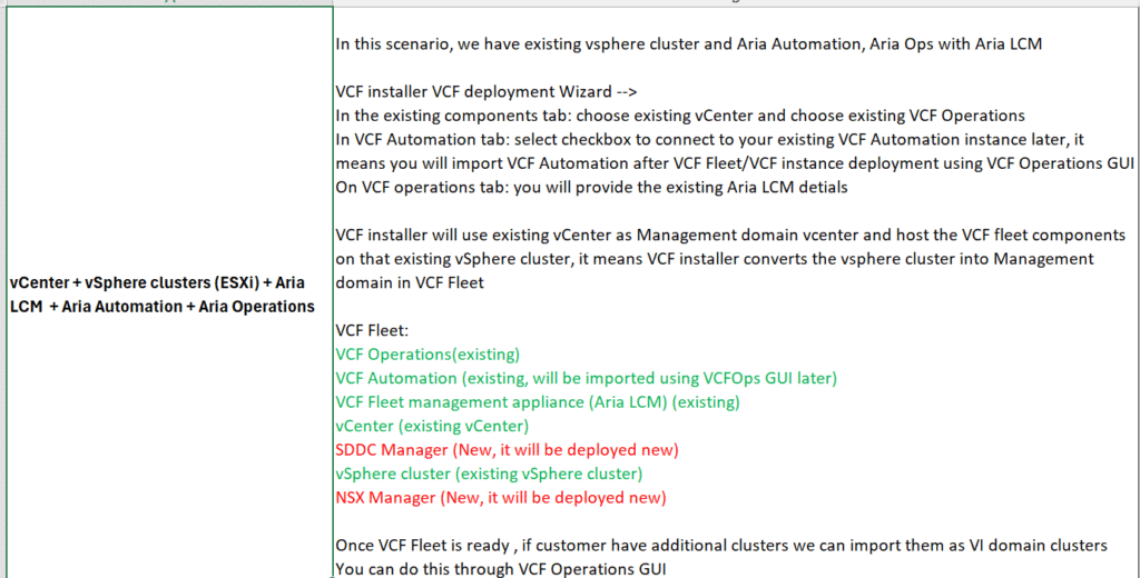 Upgrading an existing vSphere environment to VCF 9.0 requires a detailed review of BOM versions, hardware readiness, and component dependencies. Meeting the prerequisites ensures a smooth convergence of existing vSphere cluster resources into a fully integrated VCF platform. The convergence scenarios outlined above provide high level guidance on how to plan for upgrade/convergence.
