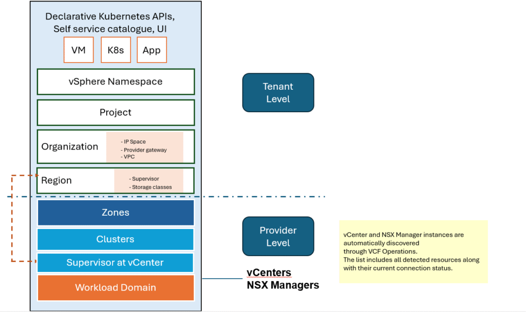 The next step is to understand the building blocks of VCF Automation—the key components that makes the self-service, cloud-like experience possible to end users. To make this easier, let’s break down the core building blocks of VCF Automation.