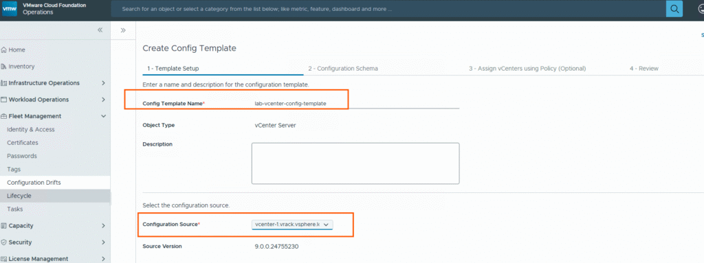We can configure a configuration template from VCF Operations console.